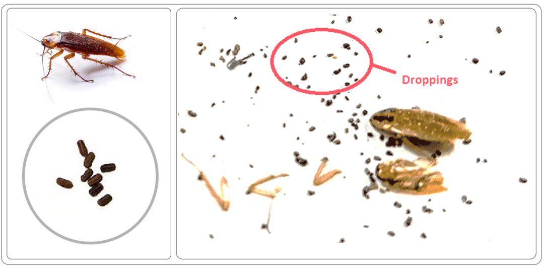 蟑螂的粪便外观:蟑螂粪便小而深,通常类似于粗咖啡渣或黑色斑点。大小和形状可能因蟑螂种类而异。常见的场所:常见于蟑螂聚集活动的区域附近,例如厨房、浴室、橱柜和储存食物的区域。