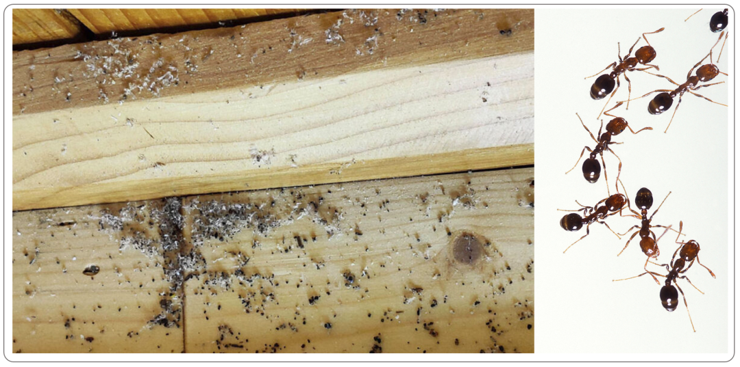 外观:白蚁粪便,类似于微小的木色或深棕色颗粒。它们通常堆积在小堆或土堆中,可能被误认为是锯末或污垢。常见的场所:常见于白蚁活动区域附近,例如损坏的木材、白蚁出没的地下室等。