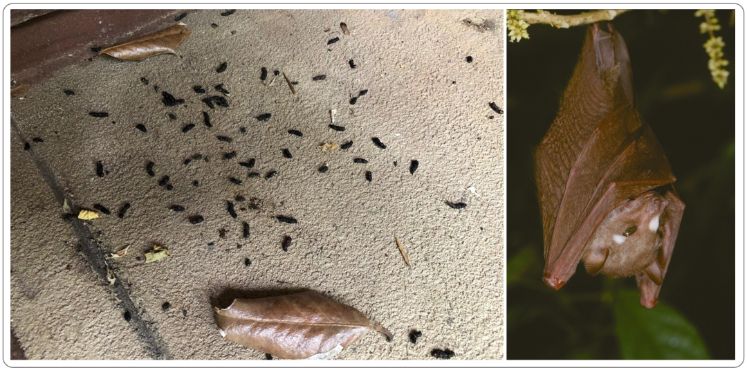 外观:蝙蝠粪便从小而细长的颗粒到类似于簇或土堆的较大堆积物。新鲜的蝙蝠粪便具有湿润和有光泽的外观。常见的场所:常见于蝙蝠栖息或筑巢的区域,例如洞穴、屋檐下。