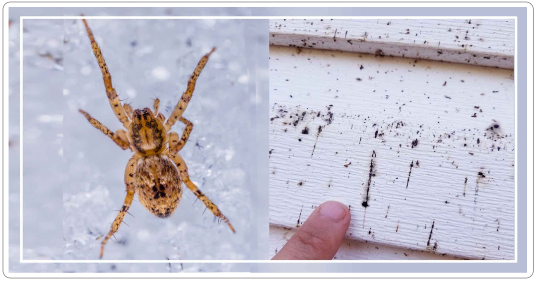 外观:蜘蛛粪便通常很小且颜色较深。它们通常表现为蜘蛛活跃的表面上的微小斑点或污渍。常见的场所:常见于它们的网附近的地面或者墙壁上。