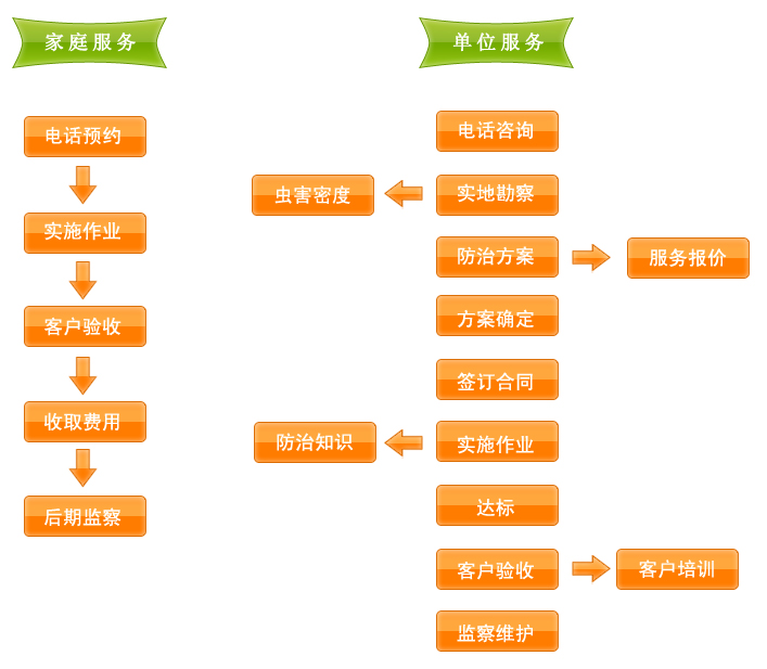 3)灭蟑实施:根据灭蟑服务方案,青松除虫公司在客户方便的时间(白天、夜晚、周末均可),上门实施灭蟑操作。请客户予以配合。